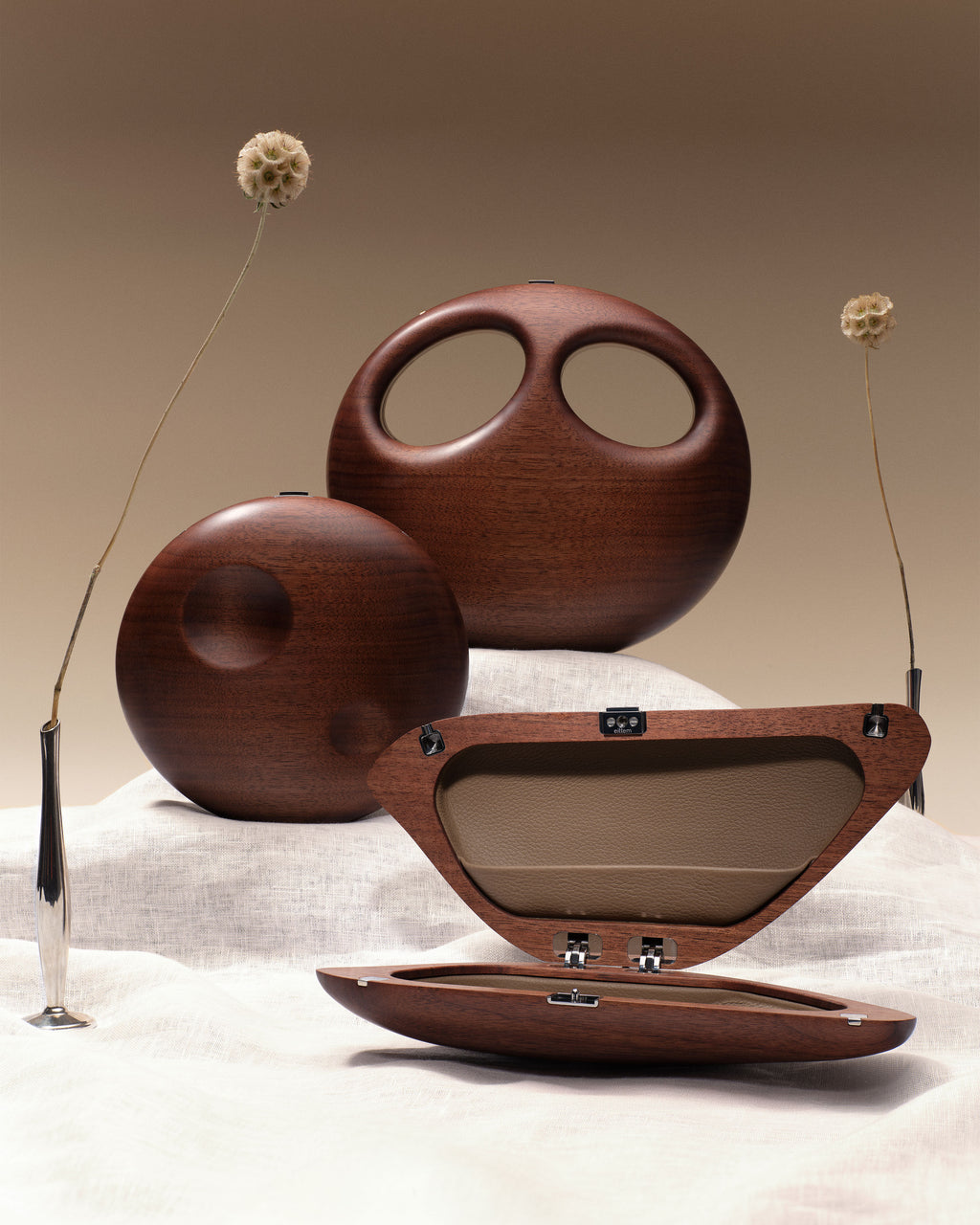 Eittem is an American luxury atelier creating sculptural handbags that blur the line between contemporary art and functional design. Founded by Creative Director Erin Saluti, each numbered piece is handcrafted in our Manhattan atelier from salvaged American walnut and designed to be carried, connected to, and collected over time.