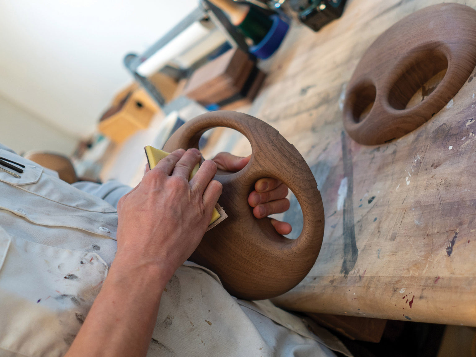 Once a form is resolved, making begins. The design is verbally translated into digital space with extreme specificity, each tool path and cutting sequence is carefully programmed to achieve tolerances measured in thousandths of an inch. This level of precision is essential to the integrity of the object and exceeds what hand alone can achieve. After carving, every piece returns to the cradle of the hand where sanding, finishing, assembly, and refinement unfold over weeks rather than hours.